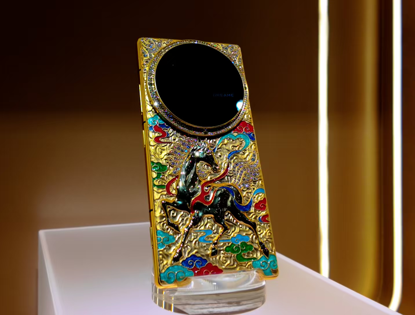 记者在现场看到,AURORA LUX系列以黄金作为基底材质,机身镶嵌圆钻,后盖部分选用全球范围内的珍稀皮革,强调每台设备的材质纹理具备唯一性,同时搭配定制化壁纸设计,强化视觉与触感的高端属性。从产品定位来看,这一系列并非以性能参数为主要卖点,而是通过稀缺材料与精细工艺,将手机向奢侈品与科技艺术品方向靠拢,面向对身份标识与独特性有需求的消费群体。